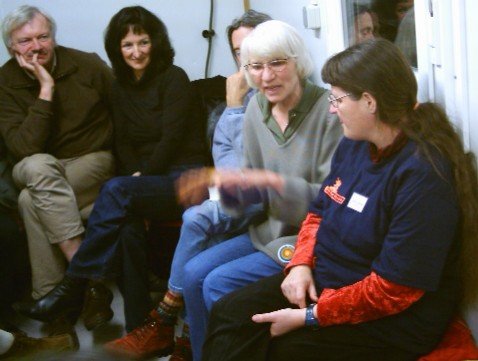 Diskutiert wurden Fragen nach Alternativen zur jetzigen durch "Hartz IV" geprägten Situation. Es ging um die Themen Existenzgeld, Tauschringe usw., und die Gäste konnten sich mit uns, der Zukunftswerkstatt Jena, darauf einigen, dass wir uns wünschen, dass Menschen Freiräume für selbstbestimmte Aktivitäten erhalten – über Existenzgeld oder andere Mittel. Bedingungen für ein selbstbestimmtes Leben müssen grundlegend verändert werden. Ein Vertreter einer Initiative für regionales Wirtschaften traf auf uns und wir tauschten Material aus und vereinbarten Kooperation.