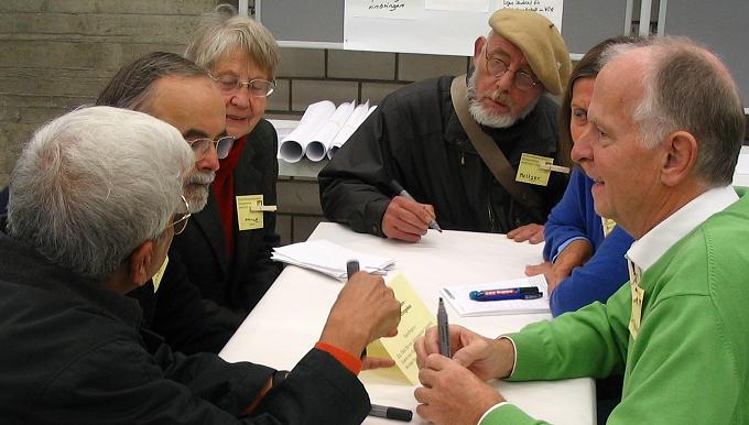 Arbeitsgruppen bewegen, sich hier und dort einbringen, eher kurzweilig und nur