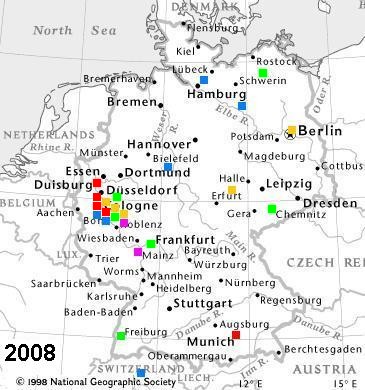 Teterow / Kreis Güstrow (Mecklenburg-Vorpommern) Ahrensburg (Schleswig-Holstein) Lanz / Elbaue (Sachsen-Anhalt) Berlin Bad Kösen (Sachsen-Anhalt) Chemnitz (Sachsen) Brakel (Nordrhein-Westfalen) Duisburg (Nordrhein-Westfalen) Remscheid (Nordrhein-Westfalen) Altenkirchen / Westerwald (Rheinland-Pfalz) Köln (Nordrhein-Westfalen) Köln (Nordrhein-Westfalen) Köln (Nordrhein-Westfalen) Köln (Nordrhein-Westfalen) Köln (Nordrhein-Westfalen) Köln (Nordrhein-Westfalen) Köln (Nordrhein-Westfalen) Köln (Nordrhein-Westfalen) Frankfurt / Main (Hessen) Mainz (Rheinland-Pfalz) Freiburg / Breisgau (Baden-Württemberg) Zürich (Schweiz) München (Bayern)