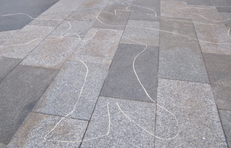 15.3.2011 um 18:14 Uhr: Erstversorgungs-Spuren nach Kontamination der Domplatte
