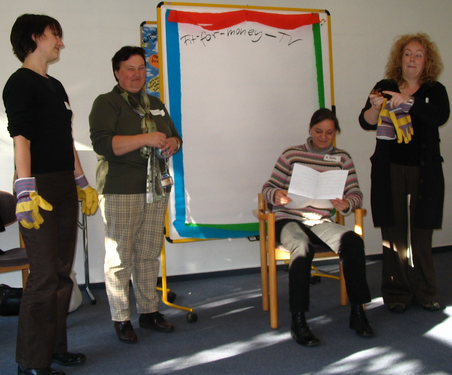Menschen aus verschiedenen Ländern machen, die Zukunftswerkstätten und Partizipationsmethoden anwenden.
